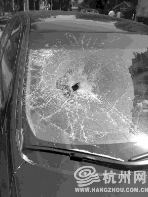 核实报道:车主姓顾。她说她的车子是前天下午停在小区停车位上的,昨天早上取车,发现挡风玻璃被砸了个洞,副驾驶座前的储物盒四周有血迹,车里的东西一样也没少。