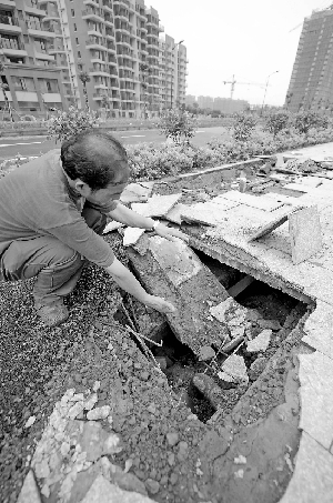 “你看,这块水泥预制板只有七八厘米厚,实际上,建筑上要求最少12厘米厚。”在对面的楼盘做建筑工作的赵师傅,用拳头测量了一下预制板的厚度,告诉记者。
