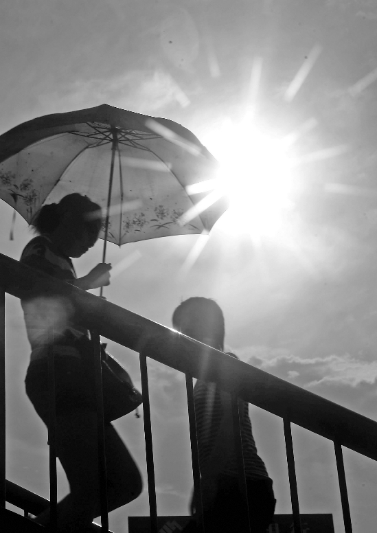 昨天,杭城天空的乌云渐渐散去,火辣辣的太阳又照射着大地,气温一路上升到33℃。行人又感受到了高温的威力,忙用阳伞遮挡着猛烈的阳光。接下来的一周,天气以晴热高温为主。