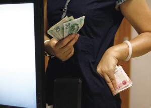 她说,大概是晚6点40分,有个30岁左右、穿深色T恤的男人到收银台来,提出想换两张百元面值的人民币。