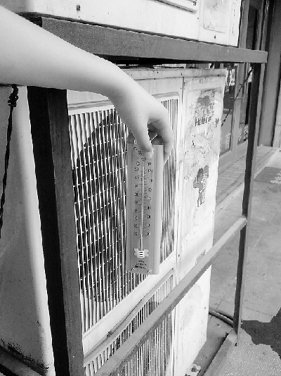 昨天天气并不是很热,记者拿温度计测了一下,室外温度约35℃,把温度计拿到距空调外机出风口20厘米处,不到1分钟,温度马上蹿到了45℃。