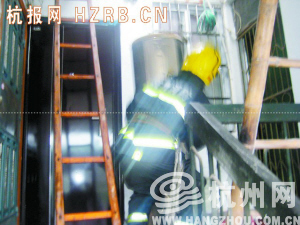 消防队员将保温桶搬到六楼