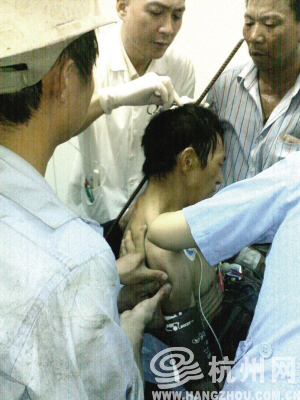 手术室外,两个工友不停地走来走去。“他是我们重庆老乡,姓罗,46岁,才来杭州一两个月,跟我一样工地上做木工的,怎么会出这种事呢?他一个人在杭州的,家里还有个16岁的女儿呐!”一位工友说,他们怎么也想不通人怎么会掉下去。“他就站在二楼,站的那块板子有一米多宽的,怎么会掉下去?他离地面总共也就两三米呀。”