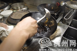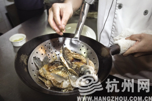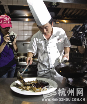 最后,谢厨师长亲自演示西湖醋鱼的正规烧法: