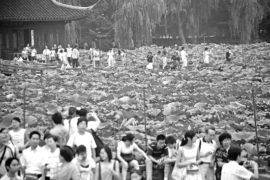 时间退回到1991年8月18日,星期天,曲院风荷湛碧楼。和现在一样,不少新老杭州人都喜欢来这里欣赏夏日的荷花。