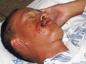 一个右腮戳穿,一个颅内出血