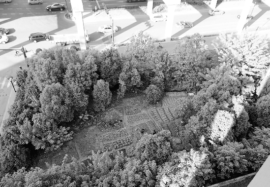 隐藏在绿化带中的菜园里,分布着几片开垦过的菜地,每片大概近十平方米,一畦一畦的菜地整整齐齐。
