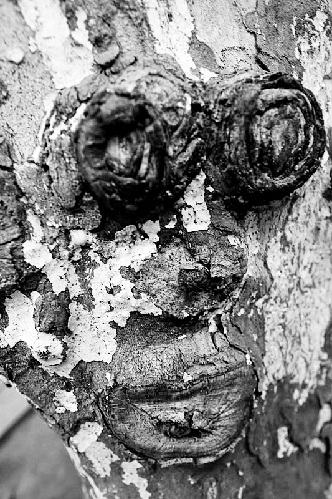 小区里有很多法国梧桐。昨天上午,偶然发现一棵很大的梧桐树干上,有一张猴子的脸,大伯大妈看到了都说:“像的,像的。”