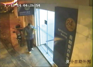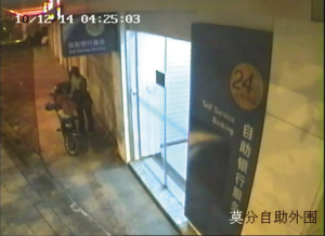 自助银行门口有辆摩托车 一男一女下手了