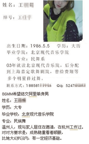 小林帮表妹在阿里内网上发的征婚帖(网页截图)