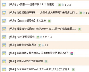 相继点开“阿里味儿”——“畅所欲言”——“互帮互助”后,和“寻物找人”、“宠物”、“转让”、“房产”等并列的,是一个“单身”版块,每天都有不少相亲帖,大部分是自我介绍,80%以上都是女孩子主动发的帖。有文有图,照片中的女孩,窈窕靓丽、青春逼人。
