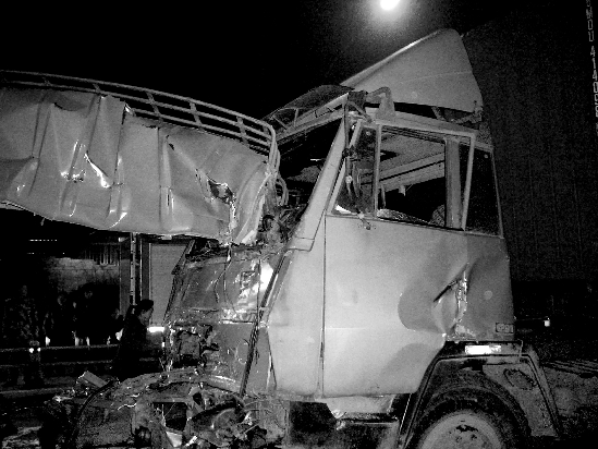 两辆车车头挤着车头,现场一片狼藉,碎片、报纸、机油等满地都是。“尤其是那辆运废报纸的货车,车头已经缩到前轮位置。”赵先生有些后怕地说,司机整个人耷拉在驾驶座上,满脸是血,受伤非常严重。“听说副驾驶座也有个人,好像当时就已经不行了。”