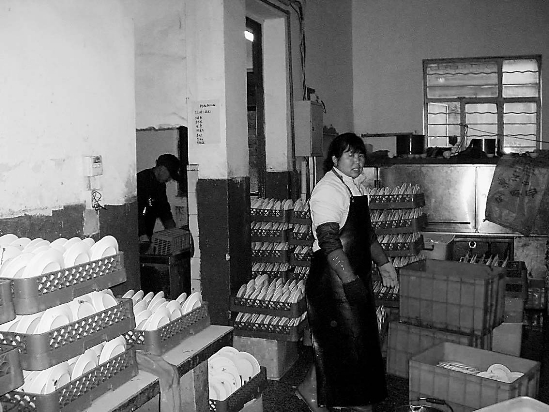 昨天,本报报道了杭城一家消毒餐具配送中心,不仅管理混乱,而且环境卫生令人担忧,甚至正在操作的工人连健康证都没有(详见本报昨日A6版相关报道)。