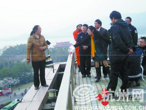 昨天中午12点15分,读者比邻致电杭报热线85109999:“杭州六公园旁边的望湖宾馆楼顶,有一女子抱着孩子想跳楼自杀。”
