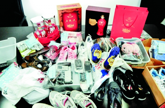 查获的部分赃物,包括高档名酒、手机及各类日用消费品。尹炳炎 摄
