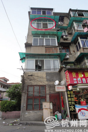 钱就是从四楼的这个窗口撒下来的 记者 许康平 摄