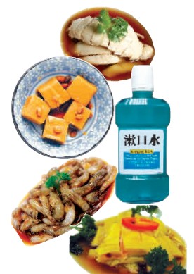 交警选择的几种食物(药品)为:腐乳、醉虾、醉鸡、菌汤鲜鳓鱼、香糟时件、花雕青蟹、漱口水。