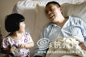 杨警官恢复得不错,女儿在一旁逗他开心。