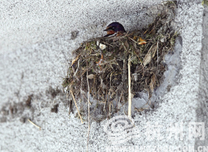 燕巢终于筑好了,就等燕子宝宝了。 记者 韩丹 摄