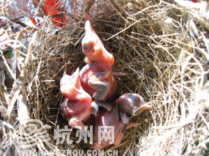 昨天13:31,周大伯来电:我住在武林花园×幢×单元6楼,窗台上种了很多花,这两天整理时发现了一个鸟窝,里面有三只小鸟,喂它们东西也不吃。昨天快报上说到了八哥和乌鸫,我看我们家的小鸟像是八哥。