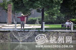 岸边捞鱼的人不少 见习记者 陈小向 摄