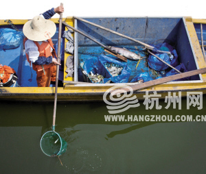 见习记者陈健核实报道:前天快报报道了大运河与余杭塘河交叉口漂浮起许多小鱼的情况,附近个别居民还用渔网把河里漂浮的“白条儿”“汪刺儿”捞出来吃,有人一个晚上就捞了10多斤,把家里的冰箱都塞满了。