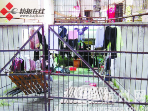 入口处,铁门紧闭,铁门上方晾晒了很多衣服