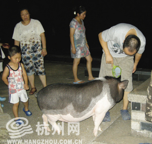 6月30日,盛世嘉园业主“humianyangguang”在小区论坛上发帖:最近大家都蛮关注我们家的猪。