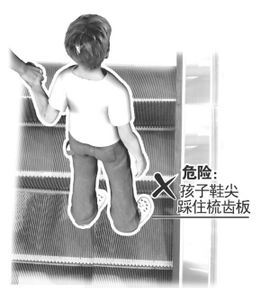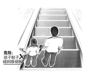 许多人乘自动扶梯时,即使脚碰到了旁边的围裙板也不当回事,大人脚比较大还好,小孩鞋比较小,碰到围裙板时,在摩擦力的作用下,鞋子就很有可能被卷到这条缝隙里。