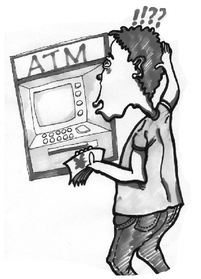 快到午饭时间,银行大厅ATM取款机前办理业务的人不多。张青走到ATM取款机前,刚准备拿卡出来,突然发现ATM机的页面并不是以前经常看到提示插卡的页面,而是显示有“取款”、“查询余额”、“退卡”等的页面。