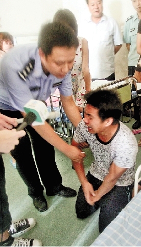 丁桥派出所的民警自发捐给了他一笔钱,每个民警捐了100元,总共是2300元,让他支付孩子的医药费。这个刚站起来的汉子再次朝着民警跪下。孩子的爷爷站在床头,用短袖衬衫的袖子抹眼泪。
