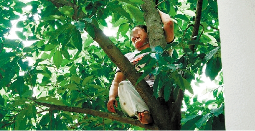 一个年纪30多岁,体态丰满的妇女,笑起来有两个浅浅的酒窝,在邻居们看来是个勤劳能干的人,但他们都不知道,原来这名妇女“身怀绝技”。昨天上午,这名妇女在和丈夫吵架时,一时按捺不住愤怒露出了自己的扎实“功底”——光着脚丫子一口气爬到超过10米高的大树树顶,说啥也不下来。