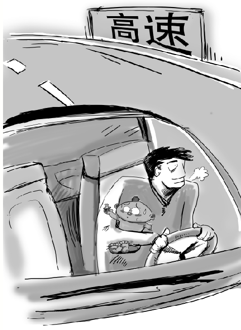 由于泮先生一只手抱了宝宝,另一只手还在“开小差”,车开得很不稳,不时忽左忽右。为了安全开车,他特意开了双跳灯,好让其他车辆及早发现避让。