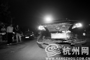 路口的夜宵老板说,撞车后,车上下来一个四十岁左右男子,满身酒气,话也说不清楚。他下车打了几个电话后蹲在路口。