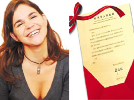 姜建生现场给玛利亚颁发了“见义勇为奖”的荣誉证书。他对玛利亚说,这是杭州第一次向外国友人颁发“见义勇为奖”,还没等翻译开口说话,玛利亚就迫不及待地接过了荣誉证书,爱不释手,嘴里又蹦出了两个中文字“谢谢!”