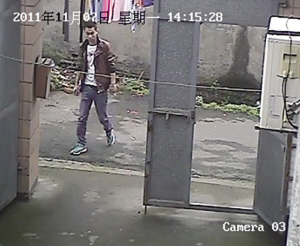 监控显示:一个打扮时尚的年轻男子有重大作案嫌疑。男子穿咖啡色皮夹克、牛仔裤、绿色运动鞋。