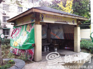 前天,张女士又打来电话,说这个亭子上的塑料纸还是没有拆掉。
