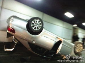 昨日3:49,朱先生来电:西湖隧道里有一辆丰田汽车翻车了,司机被压在车里,丰田汽车是先撞倒隧道里的护栏,然后翻掉的。