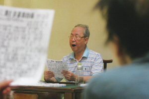 曹老师84岁,是椰岛公寓第二年长的老人,离休前在杭高教语文。李老师76岁,过去在杭高教英语。