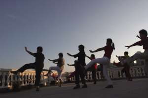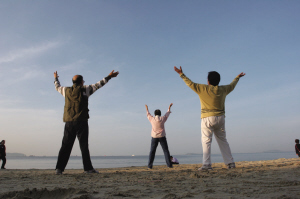 清晨六七点,海边椰林就开始热闹,这是老人们的晨练时间。武术八卦太极,音乐美术体育,快三快四迪斯科交谊舞,笛子二胡萨克斯手风琴,有持巨笔写大字的,有穿灯笼裤耍刀舞剑的,有腰杆笔直练模特步的,有一动不动对着大树或者大海吐纳换气的……