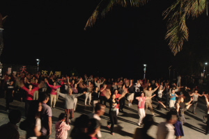 夜晚的三亚湾海边红火热闹,老人们的“夜生活”开始了。除了吹拉弹唱,主要还是广场舞——全国各地五花八门的广场舞大集锦,东北秧歌新疆舞,伦巴恰恰拉丁舞,爱情买卖套马汉子坐上火车去拉萨……或原地进退,举手投足,或排成一条长龙,跟着队伍一边舞蹈一边行进。