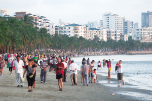 海滩一天中有三个时段人数最多:清晨、黄昏和夜晚。