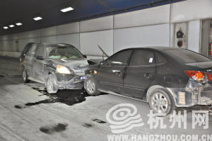 昨天凌晨1:32,读者周安荣报料:西湖隧道北向南离出口不到150米处,两车相撞。其中一辆车的司机跑了,车还在冒烟。