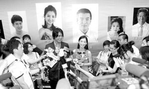 陈老板影视公司的开山之作——电视连续剧《没有承诺的爱》新闻发布会。