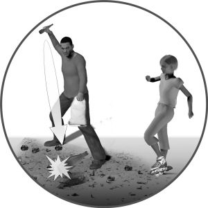 男子朝孩子们走过去,边走边挥手喊:“你们走开一点,退到边上去!”