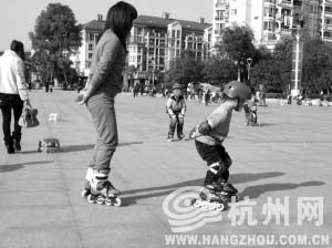 杭州学轮滑的孩子估计过万 广场培训争抢地盘愈演愈烈