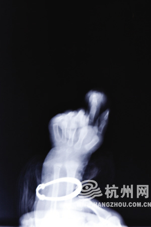 佳佳左手指的X光片 记者 胡聪 摄
