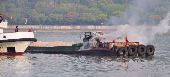 钱塘江地方海事处工作人员后来告诉记者,这艘船只装载了近250吨石子,从富阳出发前往上海。行至钱江七桥(之江大桥)下游200米处时,船老大发现船舱起火,而且已经到了自己无法控制的地步。由于发动装备被烧坏,船老大也怕出事,从驾驶室逃到船尾,并报了警。