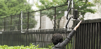 白鹭郡东小区的铁栏杆围墙上,果然有整齐划一的四根电线,将整个小区(除出入口)围了一整圈。因为刚下过雨,电线上还挂着水珠。小区围墙高的地方不到2米,靠近绿化带的围墙只有1米多高。记者踮起脚尖,伸出手去,可以轻易触碰到距离最低的那根电线。