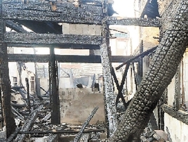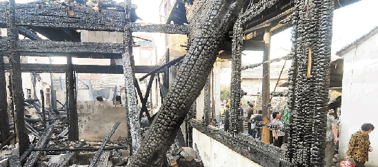 这是一幢木结构的二层老瓦房,建于上世纪80年代。上下全部是木结构,所以火势蔓延特别快,等消防赶到的时候,大火已经将相连的6间房子全部烧毁。